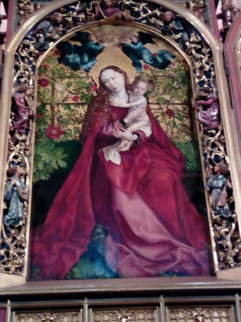 Dans l'Eglise des Dominicains, la Vierge rose au Buisson de roses de Martin Schongauer fascine les spectateurs.