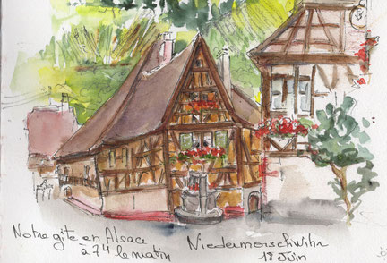 Niedermorschwir: (Morschwir du bas) est à 6 kms de Colmar.Niché dans les vignes, doté d'un cloché vrillé, le petit village se blottit au creux des vignes comme une cigogne couvant ses oeufs.