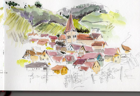 Sur la route des vins, on rencontre de drôles de villes, toutes rondes, entourées de remparts, elles s'enroulent sur le labyrinthe de leurs ruelles.