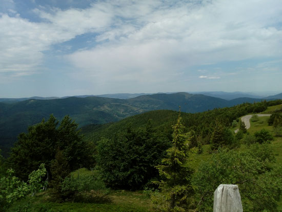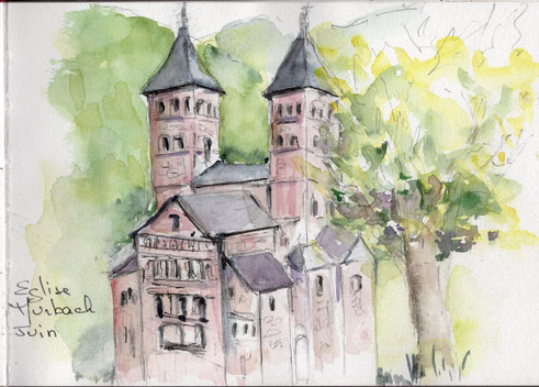 Sans doute une des plus riches églises romaines du Saint Empire Germanique, l'Abbatiale de Murbach a encore fière allure dans son cadre de verdure. Certes, elle ne conserve que son chevet et son choeur, mais quand on la contemple de la Chapelle de Notre Dame de Lorette, son grès rose en impose.